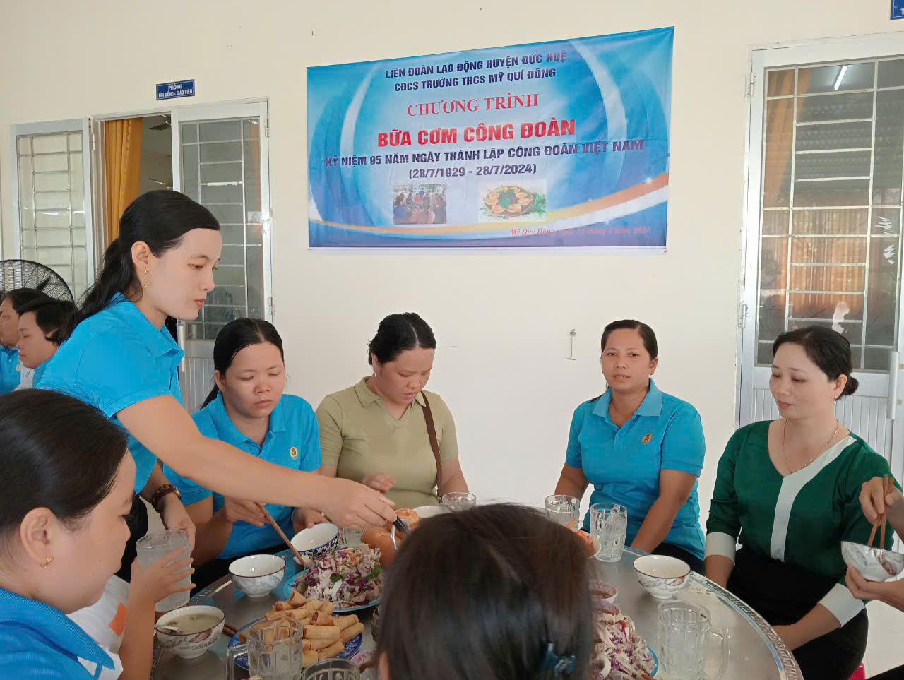 🌿Ngày 24/8/2024, CĐCS trường THCS Mỹ Quí Đông phối hợp với nhà trường tổ chức “Bữa cơm Công đoàn” cho CBGV-CNV của trường để chào mừng kỷ niệm 95 năm Ngày thành lập Công đoàn Việt Nam (28/7/1929 – 28/7/2024) nhằm gắn kết chặt chẽ đoàn viên, người lao động với tổ chức Công đoàn.