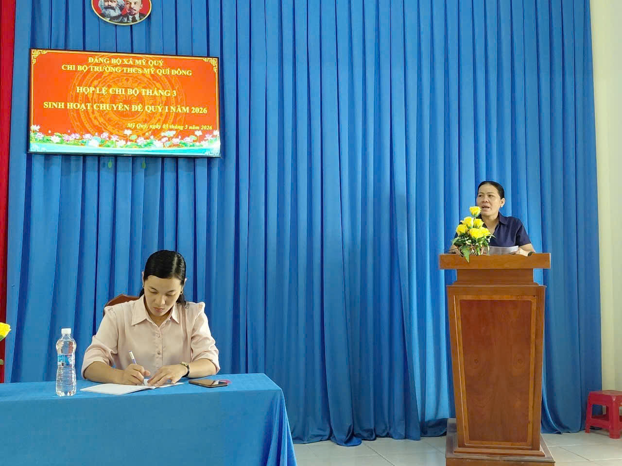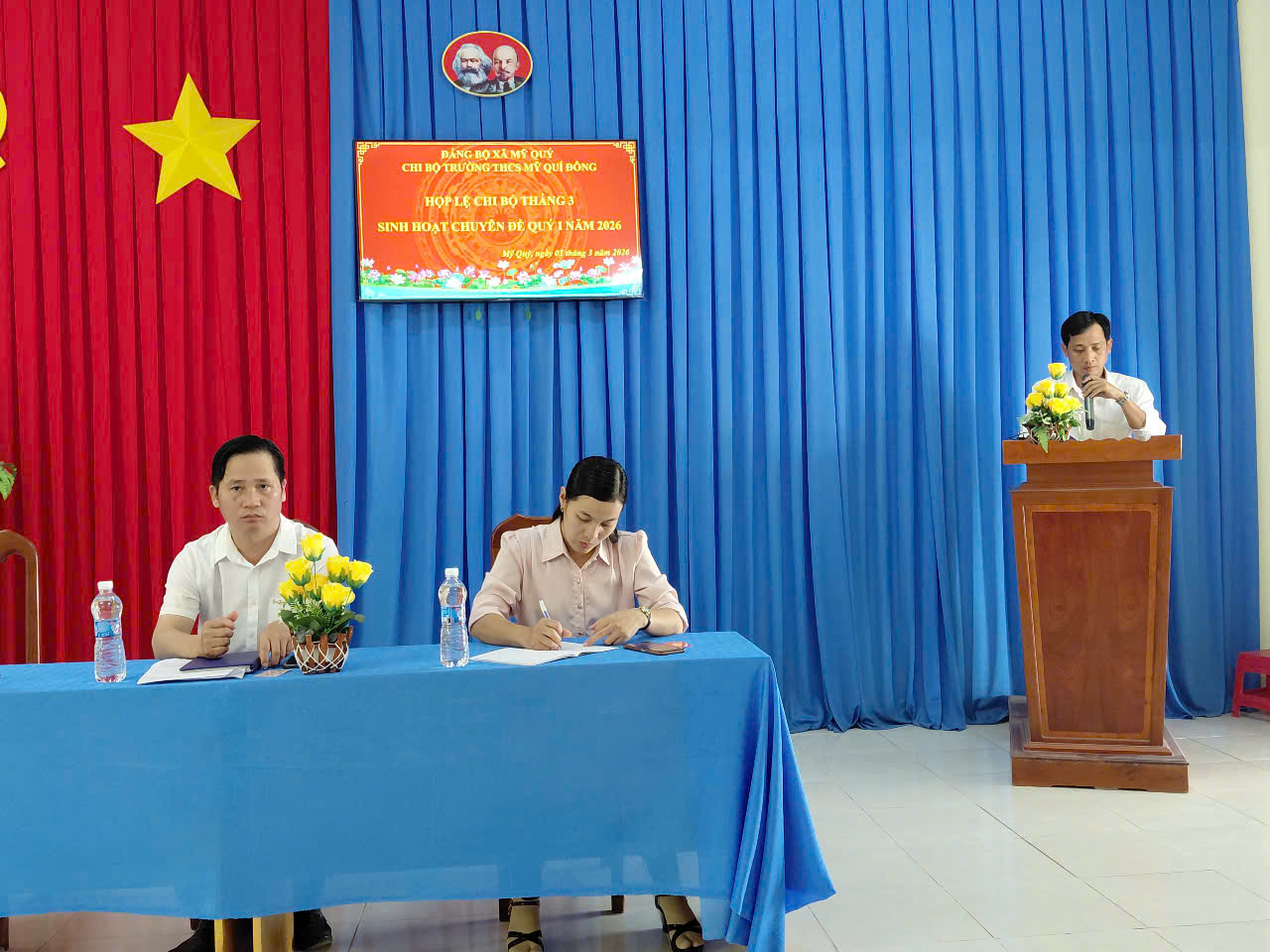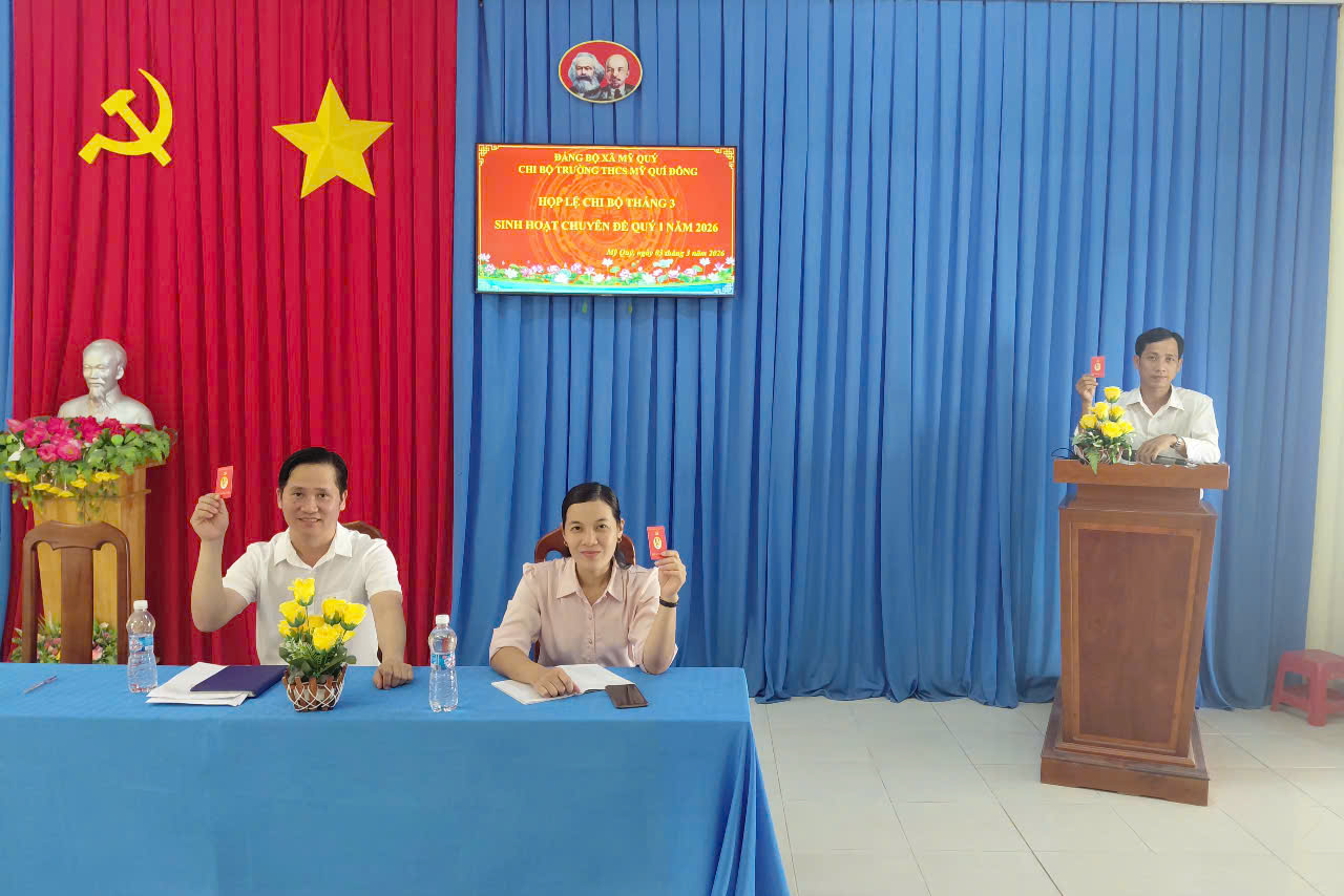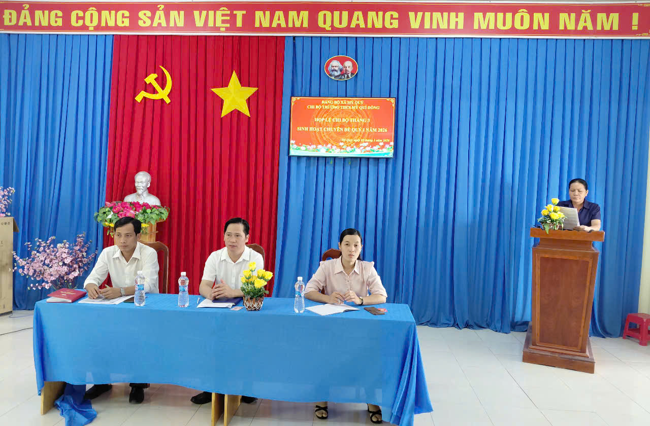 Thực hiện chương trình công tác tháng 3 năm 2026, chiều ngày 03/3/2026, Chi bộ Trường THCS Mỹ Quí Đông đã tổ chức họp lệ định kỳ tại phòng họp nhà trường.